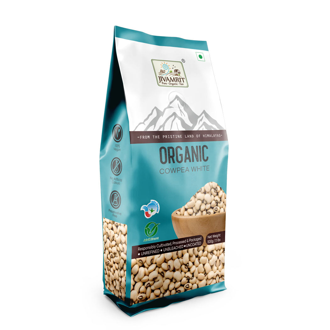 Jivamrit Organic Cowpea white are rich in flavonoids, magnesium and potassium. It is excellent sources of dietary fiber, protein, B vitamins. Jivamrit Organic products are organically grown without use...